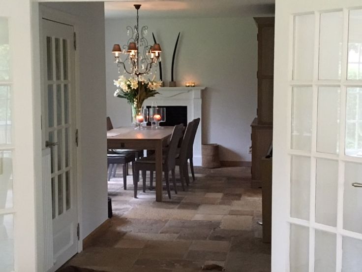 Gelijkvloers: inkomhal met vestiaire, via glazen deur naar traphal met opbergruimte. Living met open haard en erker, gescheiden eetkamer met open haard. Volledig geïnstalleerde keuken met proviandkamer, wasplaats en dubbele garage met opbergzolder. Eerste verdieping: ouderslaapkamer met dressing en badkamer (bad, douche, toilet, 2 wastafels), 2e en 3e ruime slaapkamer, 2e badkamer (bad, toilet, 1 wastafel) Tweede verdieping: 4e en 5e ruime slaapkamer met ingemaakte kasten en wastafel, opbergkamer. Voorzieningen: gelijkvloers volledig in oude Bourgondische dals, luxueuze afwerking, alarminstallatie, afstandsbediening garagepoorten en tuinpoort, mooie volgroeide aangelegde en omheinde tuin, zeer charmante villa met mooie binnenkoer in perfecte staat van onderhoud. Gelegen: teneinde doodlopende residentiële dreef, palend aan natuurgebied, kindvriendelijke omgeving. Renovatieplicht: onbekend