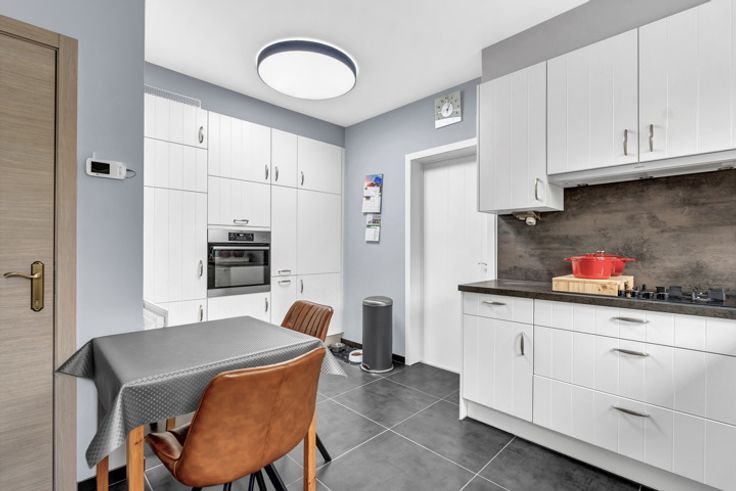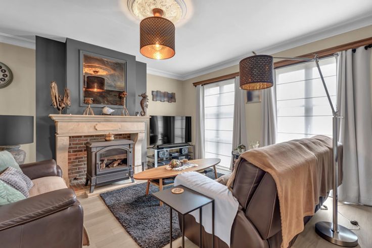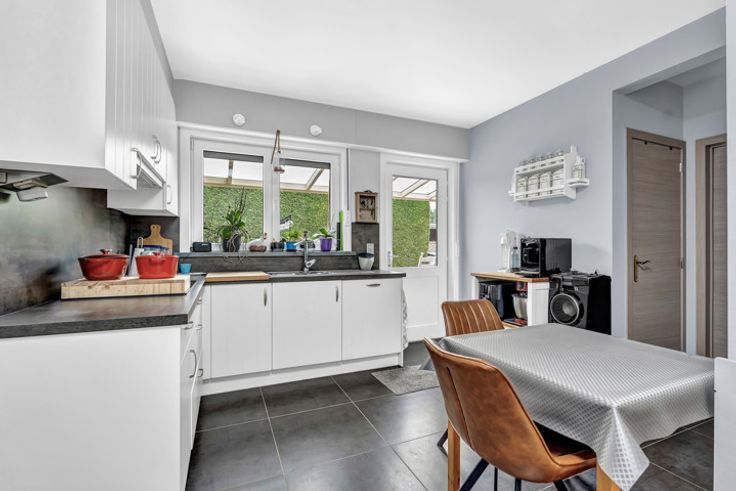 Voor meer info of een bezoek, bel 054 69 39 34 - In een autoluwe straat te Denderhoutem bevindt zich deze instapklare HOB op een perceel van 11 are. Winkels , scholen en openbaar vervoer bevinden zich op een steenworp. De oprit E-40 bereikt men op enkele minuten rijden. Het pand werd in het verleden verbouwd en is instapklaar. Mits een energetische ingreep (overschakelen op cv op aardgas) maakt men hier een uniek pareltje van. Het gelijkvloers omvat een inkomhal, toilet, ruime living met salon en eetplaats, een leefkeuken, slaapkamer, een badkamer en berging. Het verdiep bestaat uit een nachthal, berging en twee ruime slaapkamers. Tevens beschikt men over een ruime oprit, een ruime aparte garage, terras met pergola, een ruime aangelegde tuin waar men volledig tot rust komt. Buitenschrijnwerk in hout en PVC met dubbele beglazing - Verwarming op accumulatie - Dak met pannen - ELEKTRICITEIT CONFORM - 23 ZONNEPANELEN aanwezig.