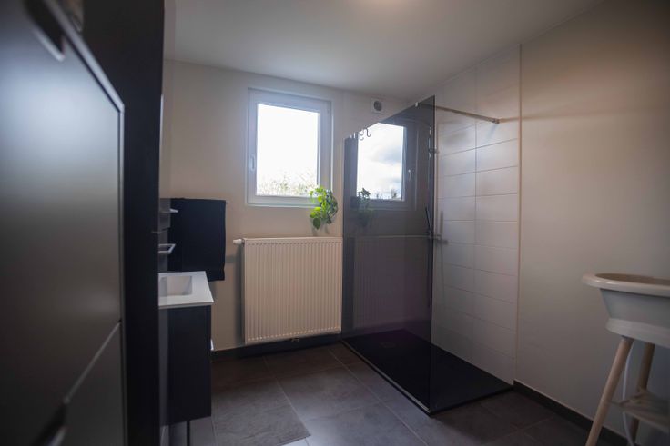 De woning beschikt over twee comfortabele slaapkamers. De badkamer is voorzien van hedendaagse afwerkingen en beschikt over een ruime inloopdouche. Er is plaats voorzien voor een was- en droogkast. De woning beschikt ook over een ruime zolder en een kleine bergruimte onder de trap.
