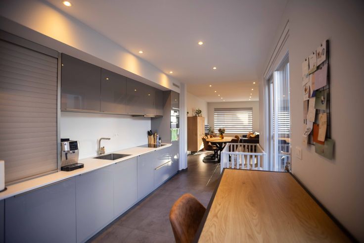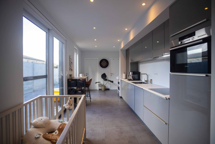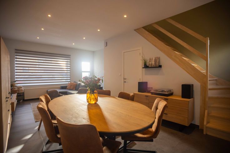 Bij binnenkomst valt de woonkamer direct op, met een open indeling die zorgt voor een gezellige sfeer. De vernieuwde keuken is praktisch ingedeeld en voorzien van alle apparatuur zoals combi-oven, vaatwasser en inductiekookplaat. Door het schuifraam naar het terras, is er in de keuken veel lichtinval. Er is een berging naast de keuken.