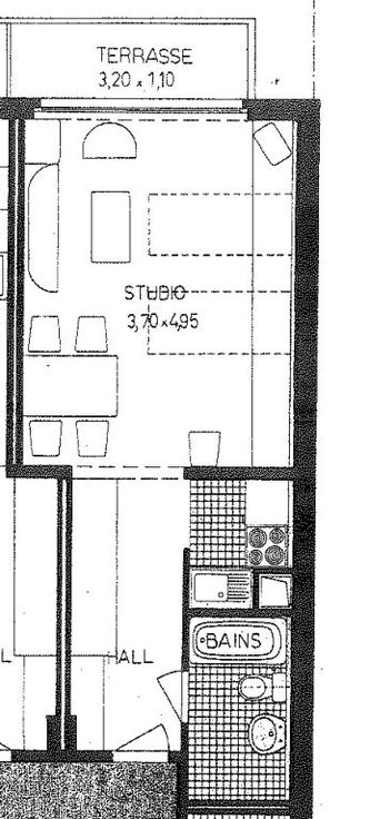 Ce studio de 35m² est composé d’un séjour lumineux orienté Ouest, d’un espace cuisine et d’une salle de bain.