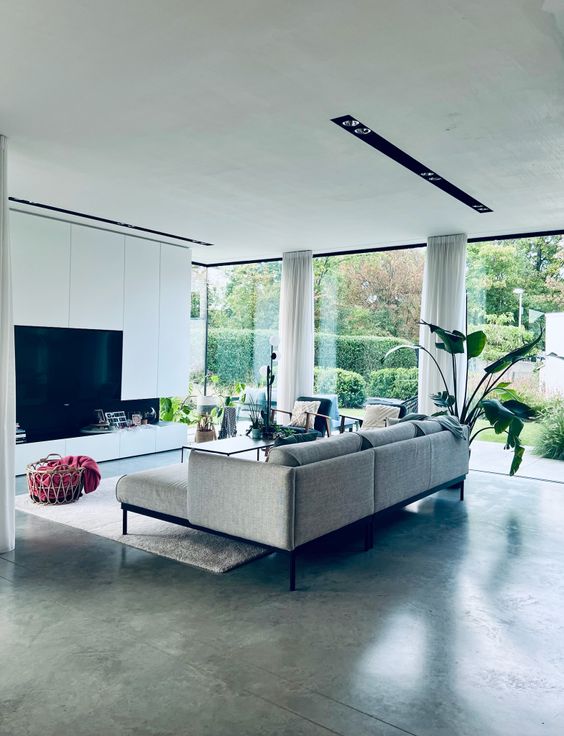 * De benedenverdieping heeft een grote leefruimte met voornamelijk glaspartijen, zo vormt de woning één geheel met de tuin