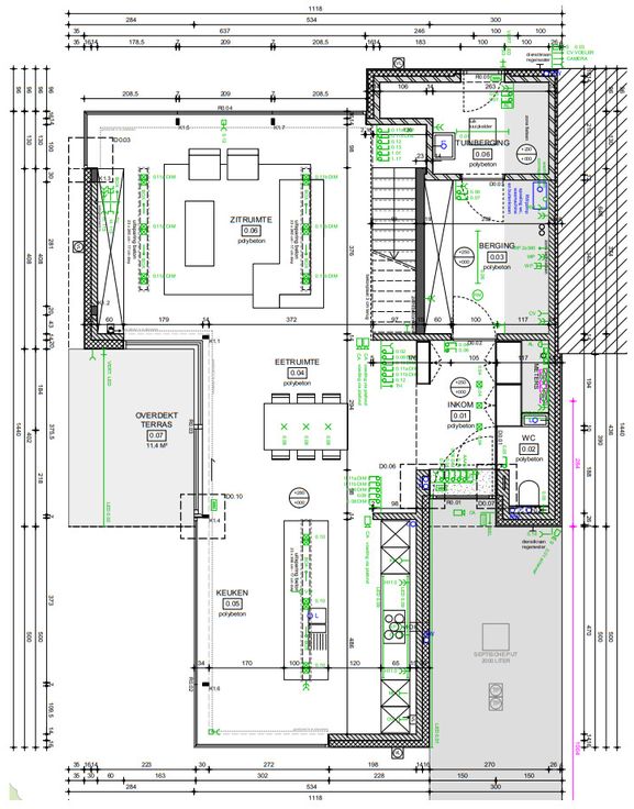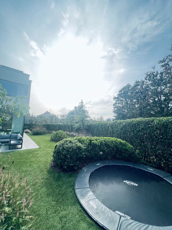 DAB, warmtepomp met (overal) vloerverwarming & koeling, domotica van Siemens Logo, zonwerend glas, perfect gepleisterde trimless plafondverlichting & alu plinten van bminus, regenwaterput van 10000l, ventilatietype D, alarmsysteem met camerabewaking binnen én buiten,...