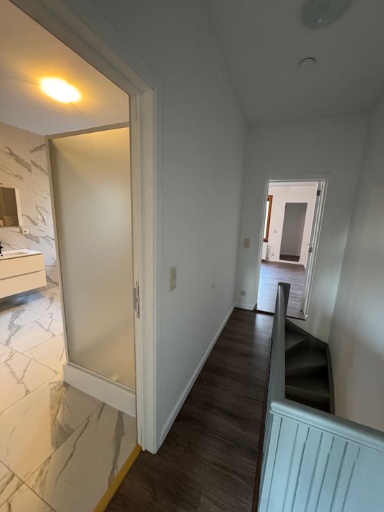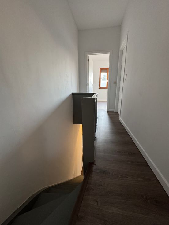 Via de trap is er toegang tot twee ruime slaapkamers, een badkamer en een klein terras. De slaapkamer aan de straatkant heeft een automatische rolluik.