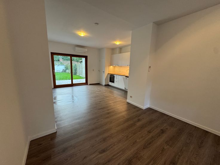 Op het gelijkvloers is eveneens een toilet voorzien. Een schuifraam geeft toegang tot de tuin met terras.