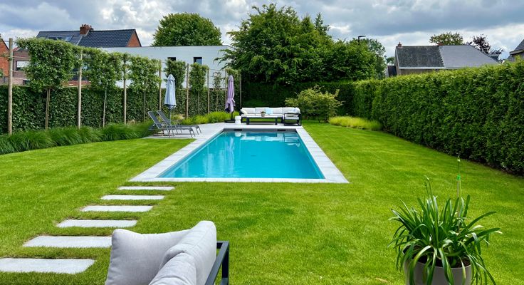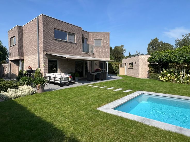 De tuin, heraangelegd in 2021, is voorzien van een kwalitatief geïsoleerd en verwarmd betonzwembad dat volledig automatisch wordt geregeld. In het recent gebouwde tuinhuis/poolhouse (24m²) is er veel ruimte voor opslag, de zwembadtechnieken zijn er ondergebracht evenals een extra toilet. Verder in de tuin een luxe regendouche op warm water.