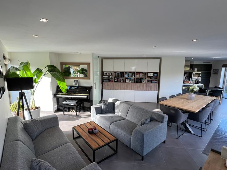 Deze rustig gelegen moderne villa biedt op het gelijkvloers een afgesloten inkomhal met vestiaire, een ingemaakte kast onder de trap en een gastentoilet. De ruime woonkamer beschikt over grote schuiframen die zorgen voor een overvloed aan natuurlijk licht. De open keuken, met aanpalende kelder, is uitgerust met centraal kookeiland en voorzien van alle moderne inbouwapparatuur. Daarnaast bevindt zich op het gelijkvloers een praktische berging voor een wasmachine en droogkast en een nieuw lichtrijk bureau met maatwerkkasten en parketvloer. In de gehele woning werden alle binnendeuren in 2022 vervangen door massieve kwaliteitsdeuren.