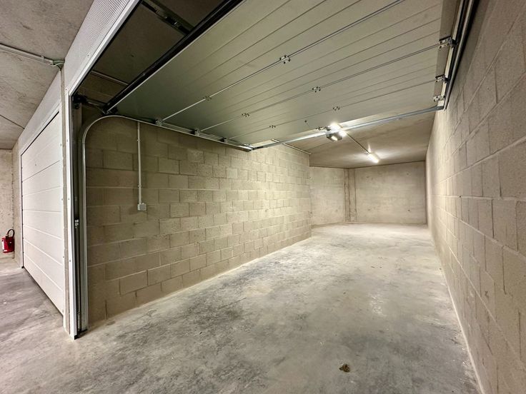 - Afgesloten garagebox die plaats biedt voor 2 wagens en een extra hoek waar bv. rekken geplaatst kunnen worden