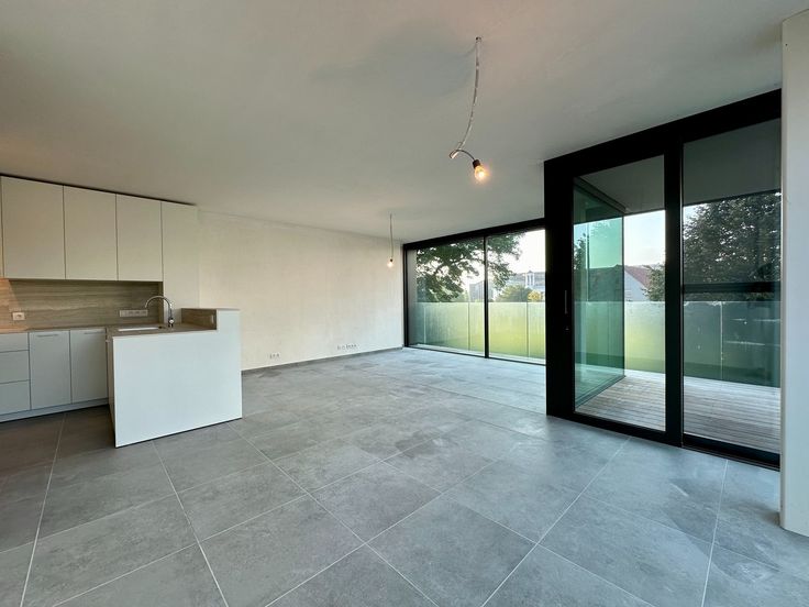 - Zeer lichtrijke leefruimte met grote raampartijen die uitgeven op het zuidgerichte terras aan de achterzijde van het gebouw