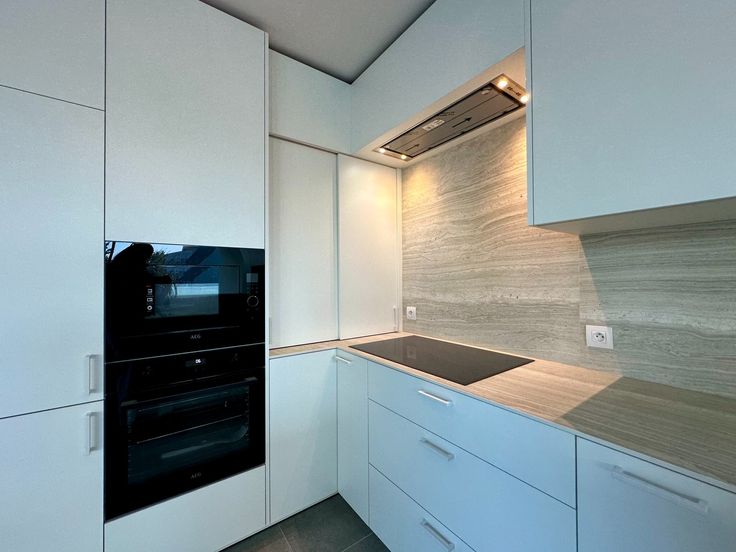 - Kwalitatief afgewerkte open keuken voorzien van inbouwtoestellen zoals aparte oven en microgolf, inductievuur, vaatwasmachine, koelkast en diepvries