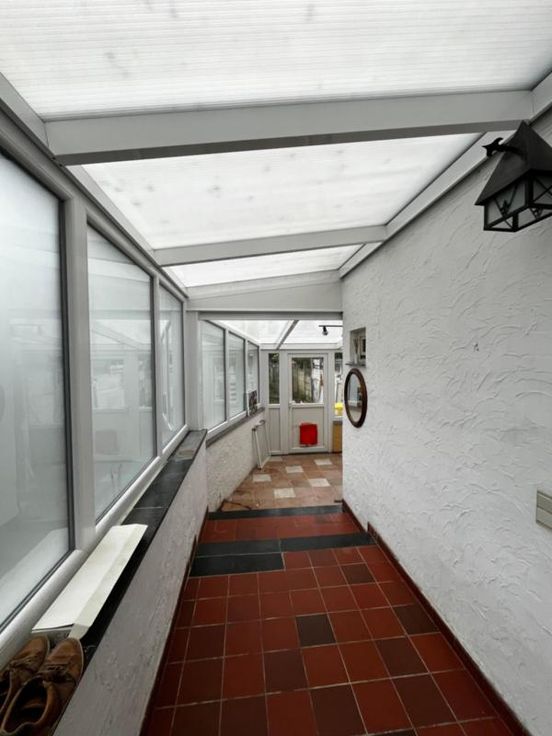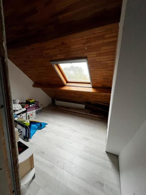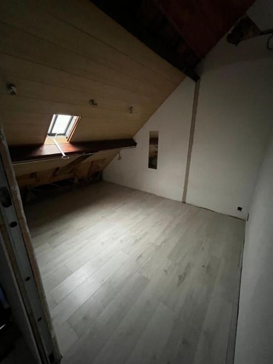 Indeling : - kelder - gelijkvloers : living, bureauruimte, keuken en badkamer met ligbad, toilet en lavabo. Achteraan de woning is een veranda met bergruimte (met voorziening voor wasmachine) alsook een tuin met carport. - 1e verdiep : badkamer met toilet, lavabo en douche, alsook 2 grote slaapkamers en gang. - 2e verdiep : vaste trap, 2 slaapkamers voorzien van velux. Erfdienstbaarheid G score: A P score: A