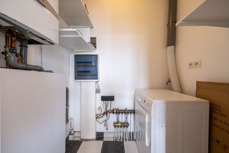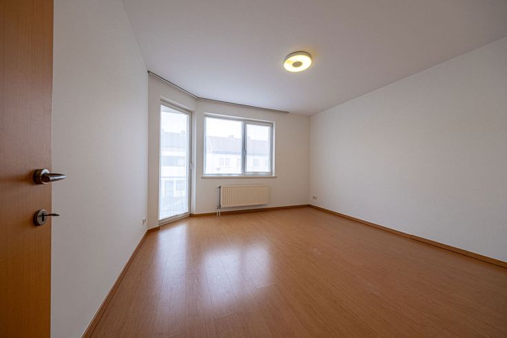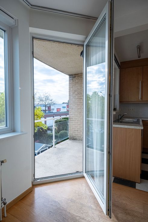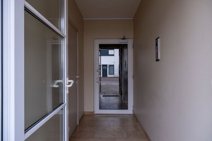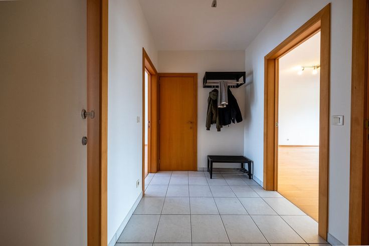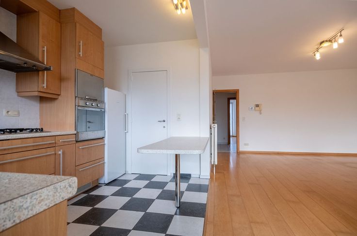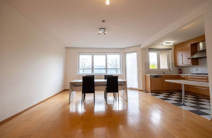 Je komt binnen in een inkomhal die uitgeeft op een ruime living en aansluitend terras. Het appartement beschikt over een open keuken met rechstreekse toegang tot de wasberging.