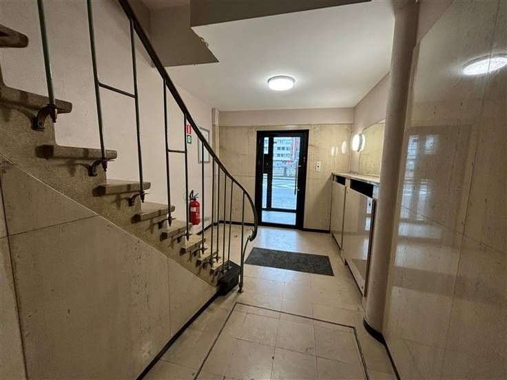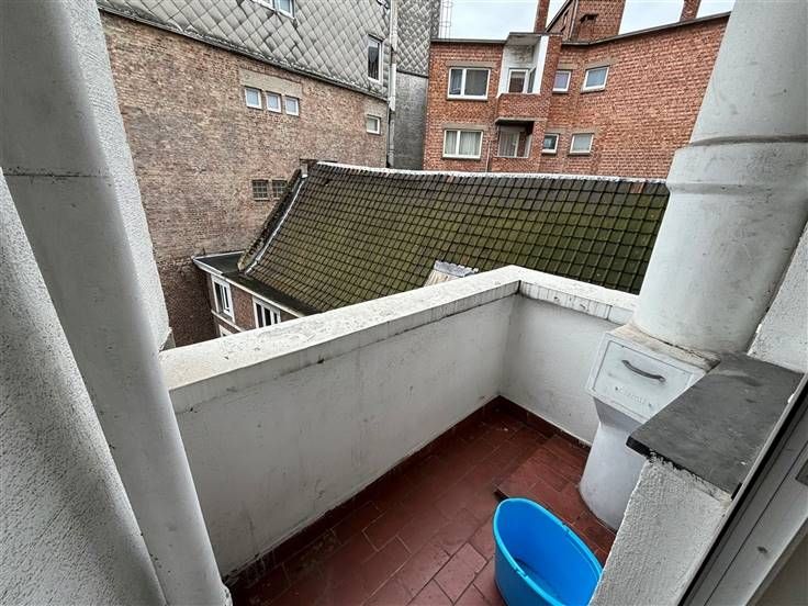 Extérieur : terrasse faç. avt (+/-16 m²), 1 balcon (cuisine, +/-1 m²) et 1 balcon faç. arrière (+/-7 m²).