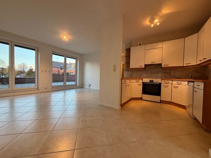 Appartement de standing comprenant 1 chambre avec un dressing encastré, une cuisine équipée ouverte sur un spacieux living lumineux donnant accès à une terrasse de 49m2, une salle de bain avec baignoire, un WC séparé, une penderie.