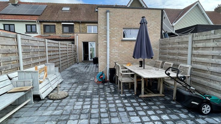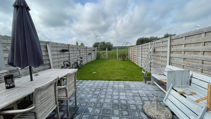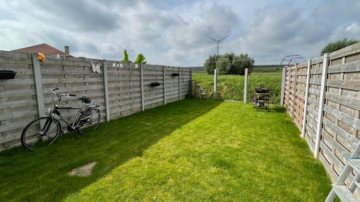 Via een dubbele deur in de keuken komt u in de ZONNIGE tuin, deze is Zuid-West gericht en is aangelegd met een blauwsteen terras en gras. Achteraan de tuin heeft u een zeer mooi en uniek uitzicht over de velden!