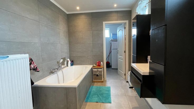 De woning bestaat uit een inkomhal met trap en ingemaakte kast, woonkamer met zithoek en eetplaats, een halfopen en volledig geïnstalleerde keuken, hier is een oven, microgolfoven, vaatwasmachine, keramische kookplaat, dampkap, daarnaast is de ruime berging/wasplaats met badkamer voorzien van een inloopdouche en ligbad. Apart toilet aanwezig. De volledige woning is voorzien van ingemaakte LED spots!