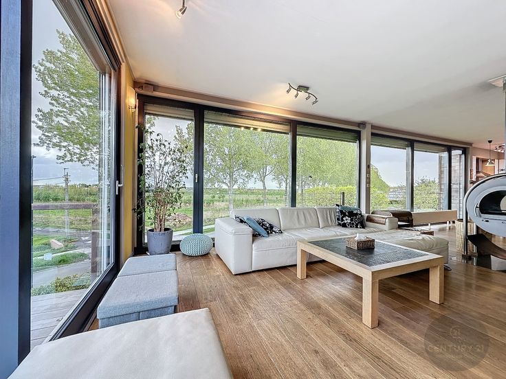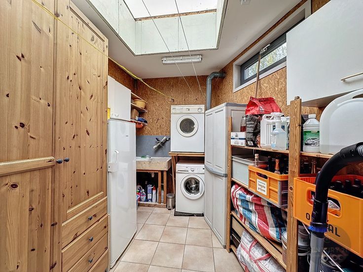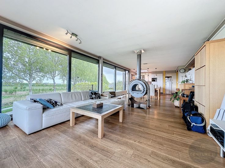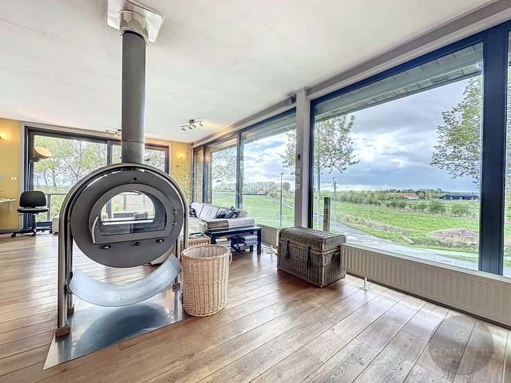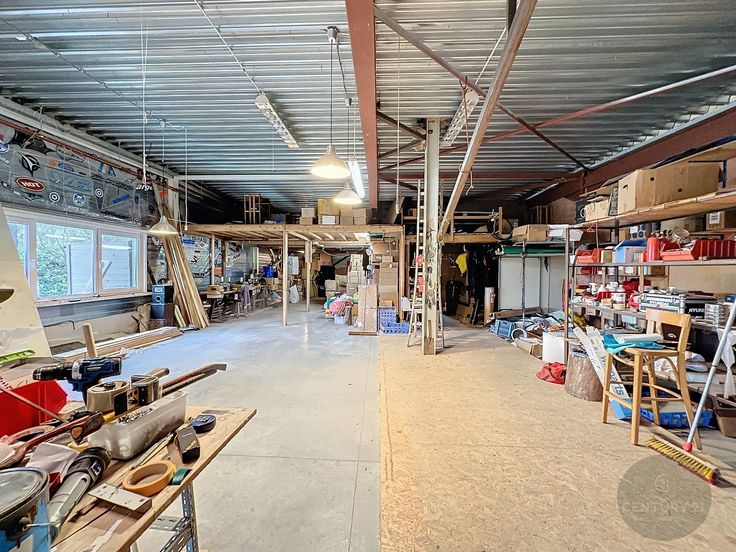 Unieke woning met loods van 200 m² en prachtig uitzicht over de velden. De loods heeft een ruime parking voor 5 auto's, is 4 meter hoog en is deels ingericht met 2 verdiepingen. De elektriciteit is driefasig en voorzien voor zware machines. Boven de loods is de woning gebouwd. Zeer unieke en knappe constructie. Indeling woning: inkom, apart toilet, 4 volwaardige slaapkamers, badkamer met ligbad en douche, een open volledig ingerichte keuken en ruime lichtrijke living met veel glaspartijen en een designhoutkachel, berging en zonneterras. Er zijn 28 zonnepanelen met nog 6 jaar groenestroomcertificaten van € 350/1000 kWh. ----------------------------------------------------------------------------- Propriété unique avec 200 m² de hangar et de belles vues sur les champs. Le hangar dispose d'un grand parking pour 5 voitures et comporte en partie 2 étages. La maison est construite au-dessus de la remise. Une construction unique et élégante. La maison est composée d'une entrée, de toilettes séparées, de 4 chambres spacieuses, d'une salle de bain avec baignoire et douche, d'une cuisine ouverte entièrement équipée et d'un salon spacieux et lumineux avec de nombreuses baies vitrées et un poêle à bois design. Il y a 28 panneaux solaires avec 6 ans de certificats verts de €350/1000 kWh restants. L'électricité est triphasée et fournie pour les machines lourdes.