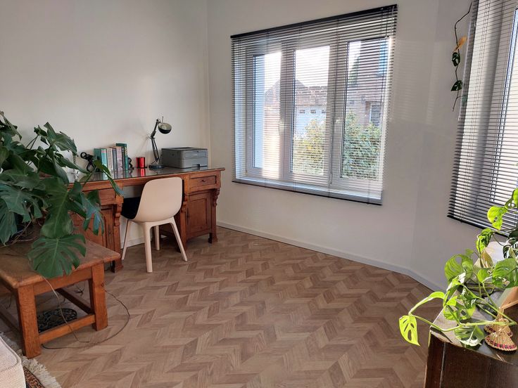 Op de verdieping zijn er nog een extra toilet en 3 slaapkamers, waarvan één kleinere die perfect als bureau of kinderkamer gebruikt kan worden. Deze werden reeds ingericht, maar wachten op een eigen touch (vloeren af te werken).