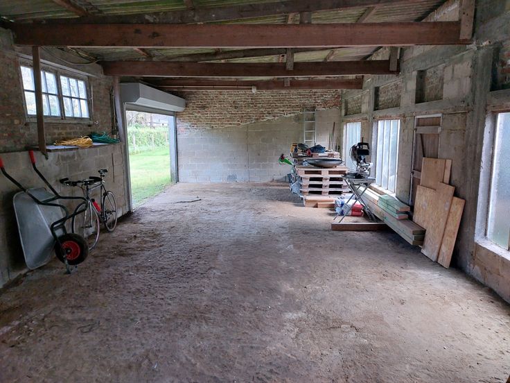 - Ruim atelier en garage voor meerdere voertuigen achteraan de woning. Ideaal als werkplaats of voor een creatieve invulling.