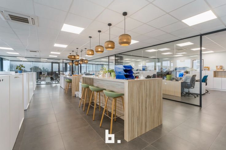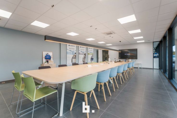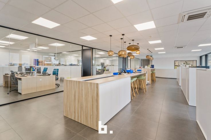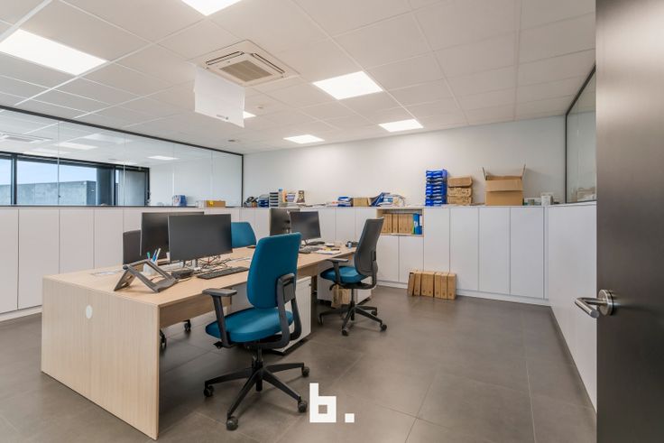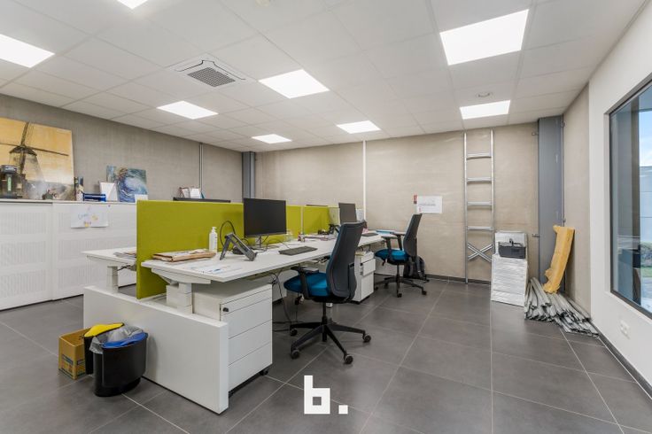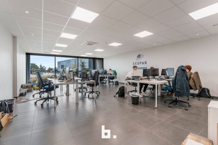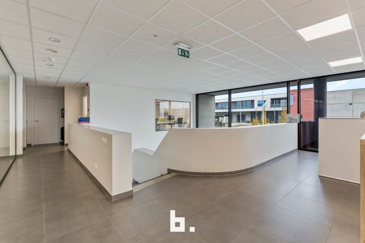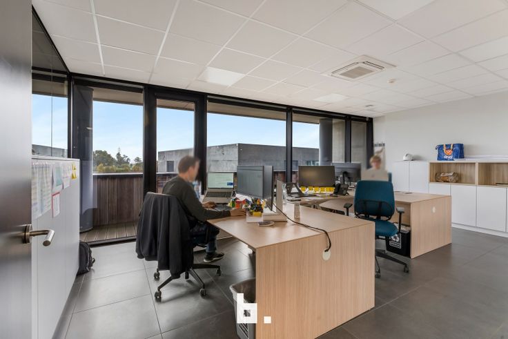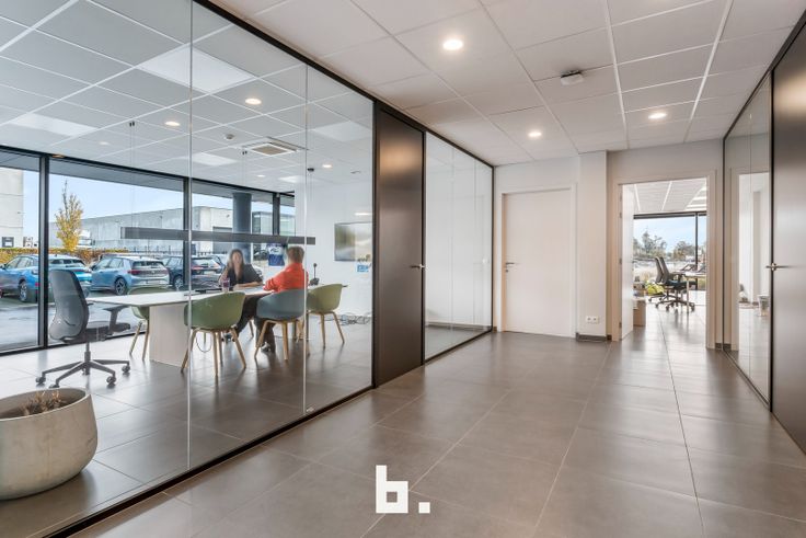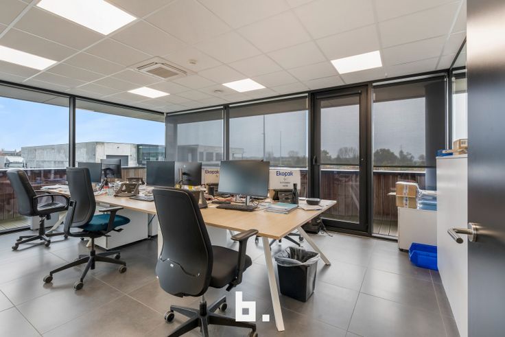 Op het gelijkvloers bevindt zich een ruime en lichte inkomhal die een professionele uitstraling biedt. Daarnaast zijn er meerdere afzonderlijke kantoren, een goed uitgeruste vergaderruimte, een kitchenette met eetruimte en moderne sanitaire voorzieningen, inclusief een douche en kleedruimte. De eerste verdieping is ingericht met een combinatie van aparte bureaus en een open werkruimte, aangevuld met een terras. Voor maximaal comfort zijn de kantoren uitgerust met zonnewering, airconditioning en vloerverwarming. De totale oppervlakte van de kantoorruimtes bedraagt 450 m².