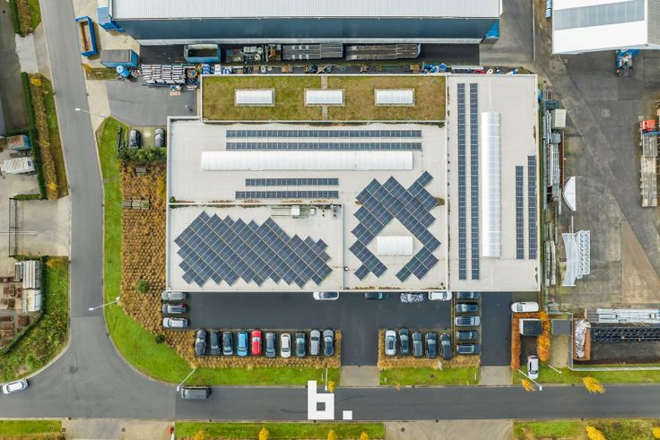 Alsook zijn er zonnepanelen voorzien, dat zorgt voor een efficiënte en duurzame werkomgeving voor uiteenlopende bedrijfsactiviteiten.