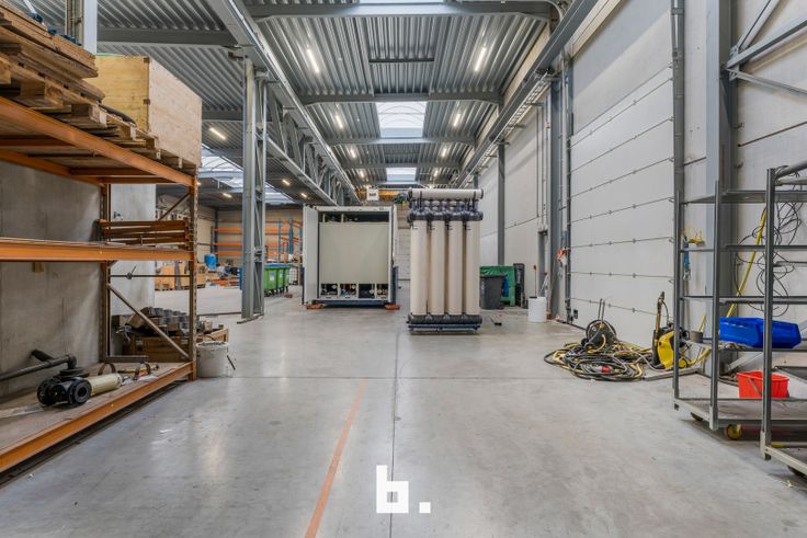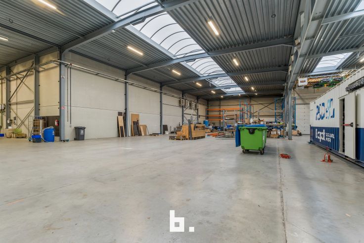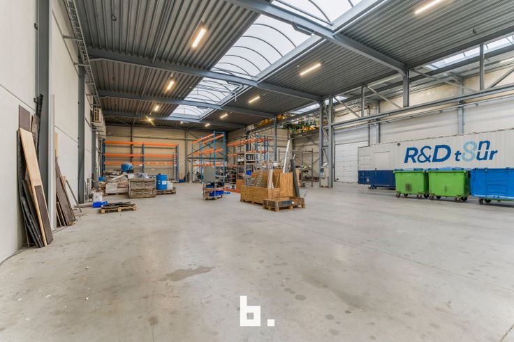 Het magazijn heeft een oppervlakte van 1.550 m² en een plafondhoogte van 7 meter, ideaal voor opslag en logistieke activiteiten. Het is voorzien van een industriële rolbrug, wat de operationele efficiëntie verhoogt. Bovendien zorgen de zonnepanelen op het dak voor een milieuvriendelijke energievoorziening.