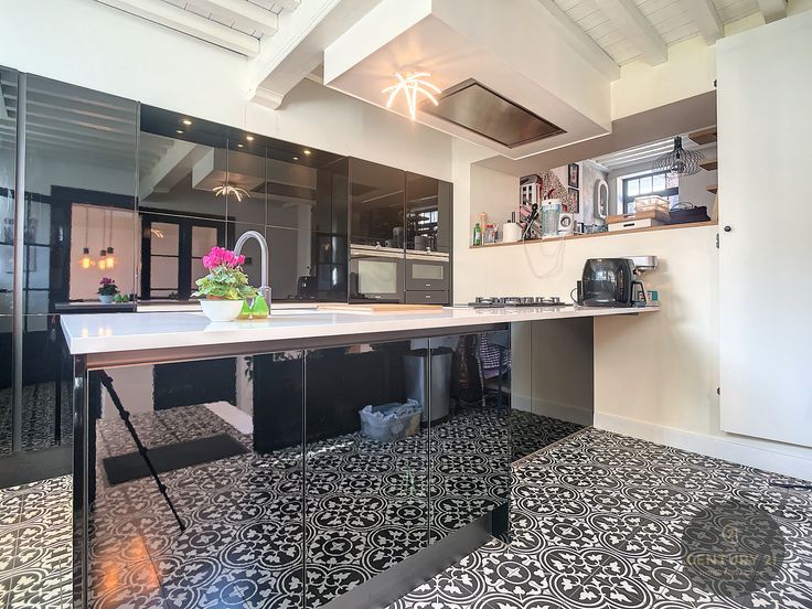 Verder is er een moderne ingerichte keuken met eiland, een prachtige woonkamer met authentieke elementen, een mooie bureauruimte met wasplaats en toilet, een eerste slaapkamer met badkamer en op het tweede verdiep een tweede slaapkamer.
