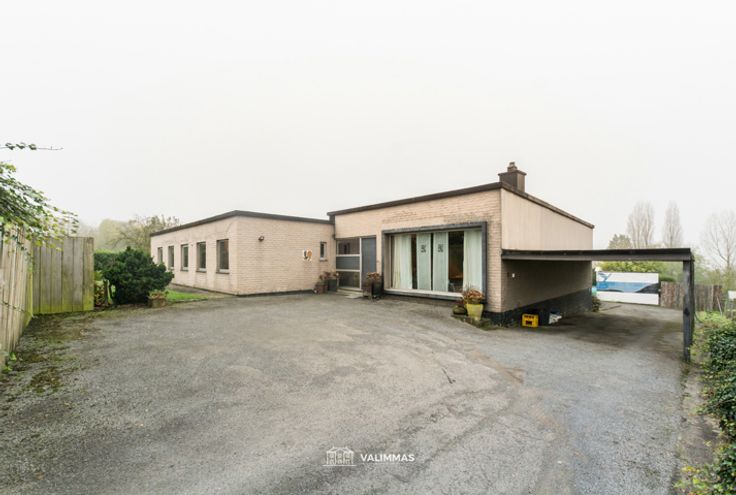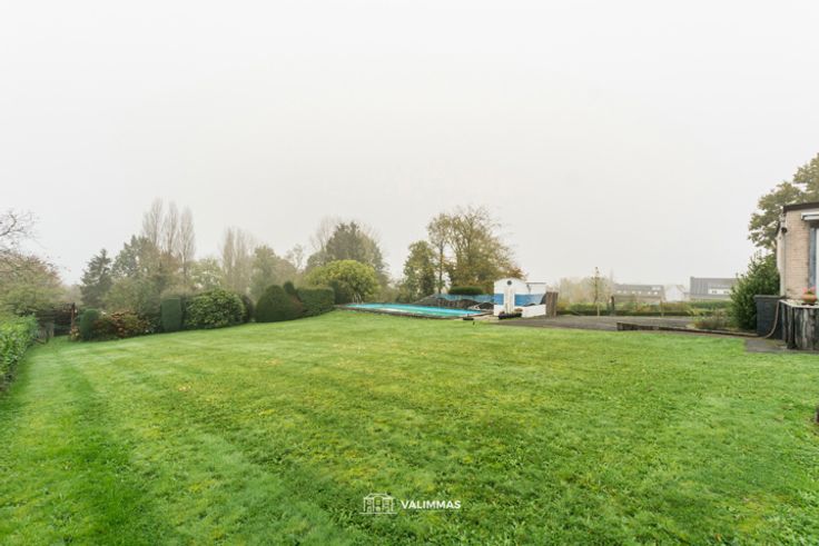 VALIMMAS verkoopt deze uniek gelegen villa-bungalow op 22 are, met garage, mooie tuin en zwembad. Gelegen in tweede bouworde, en bereikbaar via een private oprijlaan (in eigendom) = discrete oase van rust, met prachtige zichten op agrarisch gebied !! Deze ruime villa bestaat uit een inkomhal, een toilet, een bureel, een grote living in L-vorm en met inbouwhaard, een ingerichte keuken, een ruime en lichtrijke nachthal/speelkamer/bureel, een berging, een badkamer met ligbad, en vier slaapkamers (waarvan thans één ingericht als dressing en één met sauna-cabine). In het kelderniveau bevinden zich een hal, een garage, een werkplaats (± 25m²), een wijnkelder, en twee proviandkelders. De private oprijlaan is geasfalteerd, alsook de parkeerruimte voor de woning, de carport en de inrit naar de garage. De tuin werd aangelegd met een uitgestrekt gazon, een zonneterras, een zwembad (± 70m²) met poolhouse, hagen, sierheesters, ... Dit betreft een degelijke en goed onderhouden villa, dewelke echter wel nog gemoderniseerd dient te worden... interessante fiscale stimuli te bekomen bij aankoop & renovatie van de enige eigen woning: verkoopbelasting (registratie) slechts 1% mits energetische renovatie + tijdelijke korting of vrijstelling van de onroerende voorheffing, verbouwingen aan 6% BTW, diverse premies,... (steeds onder voorbehoud dat aan de voorwaarden voldaan is - zie ook www.vlaanderen.be). Centraal gelegen tussen Asse en Ternat, met makkelijke verbindingen naar E40,