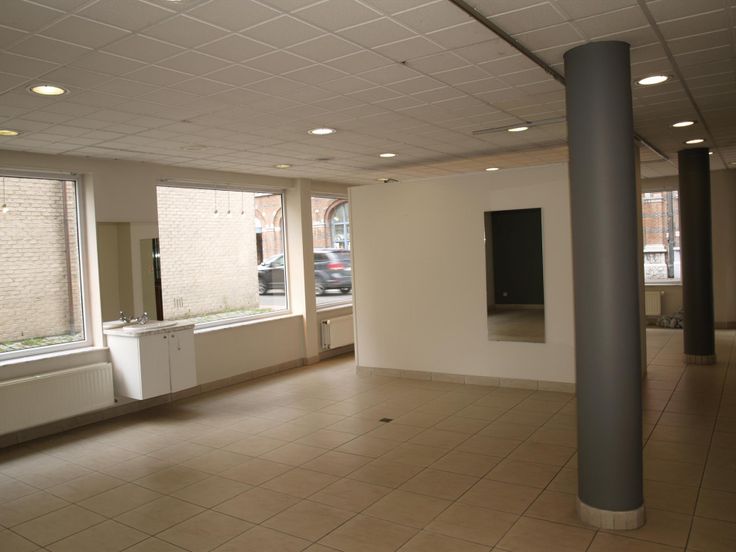 Het handelsgedeelte bevat ongeveer een 94m² open ruimte. Er is een apart toilet + doucheruimte voor het cliënteel. Via een afzonderlijke gang is er toegang tot een bureel/opslagruimte en berging. Mooie grote raampartijen, met veel lichtinval in de handelsruimte.