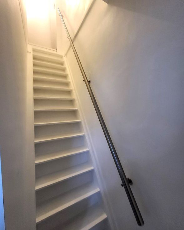 Via de trap begeven we ons naar de 3 slaapkamers en de badkamer (bad + douche + lavabomeubel + wc).