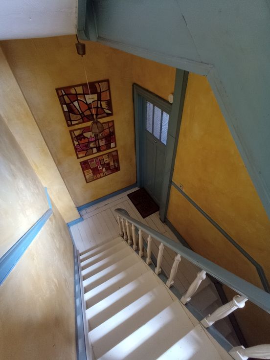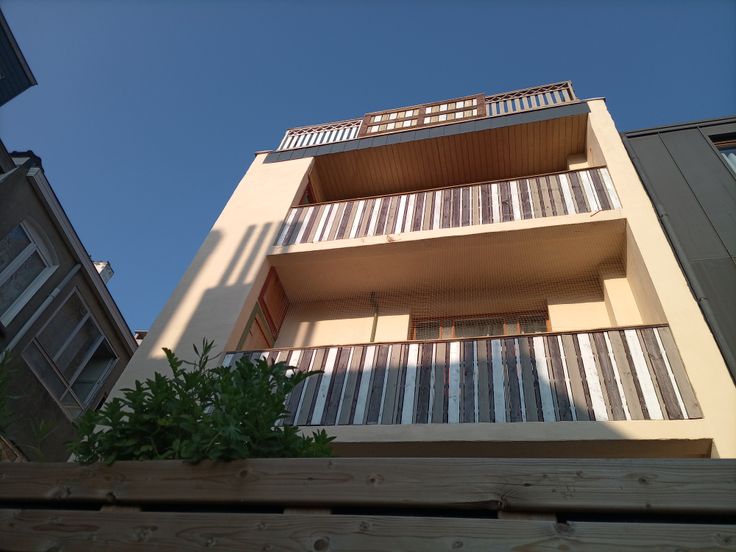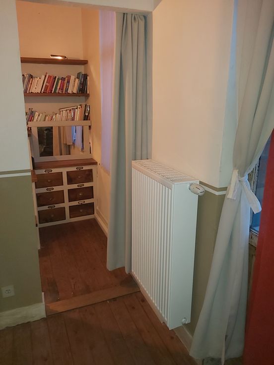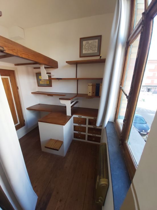 Situé au premier étage de la maison, cet appartement de charme, lumineux, inspiré de la simplicité volontaire et de la vie en mer est rénové avec goût, avec des matériaux écologique. Cuisine à la française d’époque, meubles patiné à l’huile dure, ont la « touch » des antiquaires de la célèbre rue Blaes de Bruxelles. Salon avec feu ouvert (cassette), salle de bains avec baignoire et douche, lavabos en terre cuite et WC. Petite chambre/bureau avec lit «marin» en mezzanine, bureau, commode et bibliothèque intégrée. La superficie privative au sol de l’étage fait 69m² avec une grande terrasse orientée au sud-ouest. Plancher traité à l’huile dure bio. Parfait pour une ou deux personnes ! Charges 41€ – possibilité de wifi et buanderie partagé – fond de réserve 35€. Chauffage central individuel à condensation de 2022 ; Toutefois, le poêle d’origine de la cuisine est le premier poêle de Louvain au gaz avec thermostat de 1960 en parfait état de marche ». Contrôle électrique ok – PEB E – double vitrage à installer. Bienvenue à la Résidence Human’s land, une jeune copropriété qui vous attends.