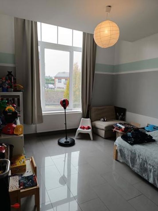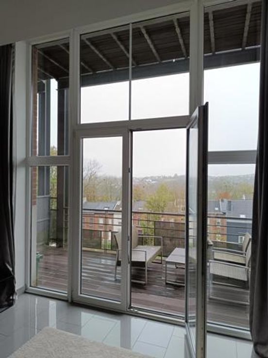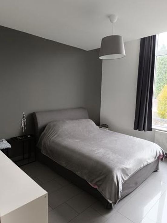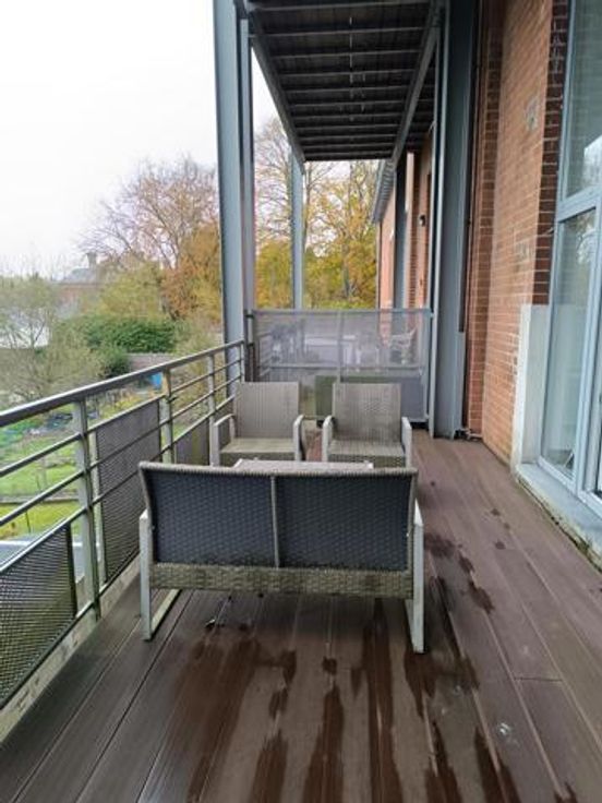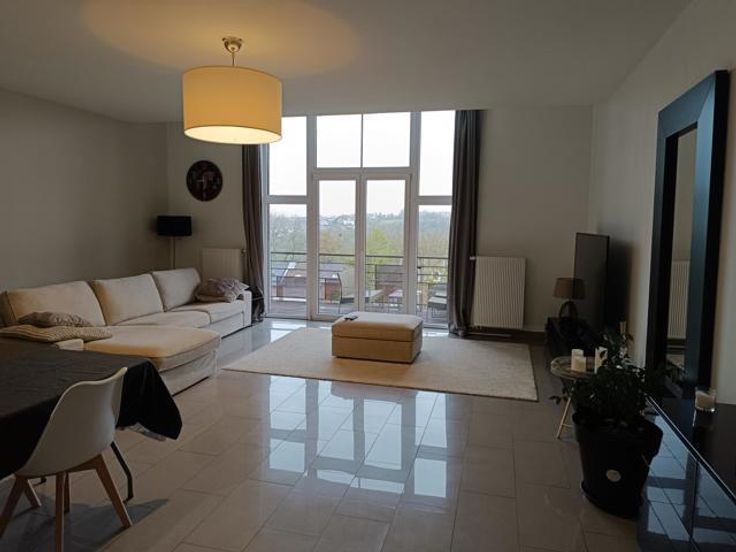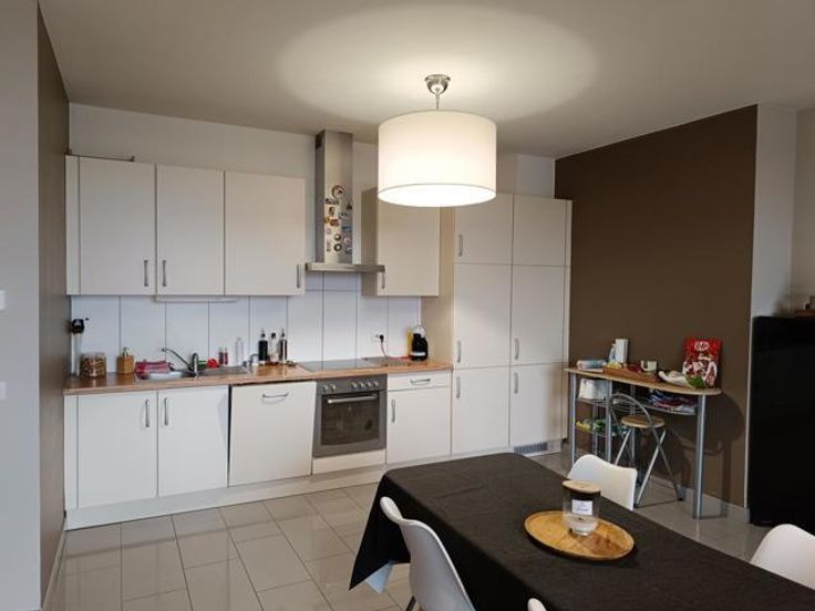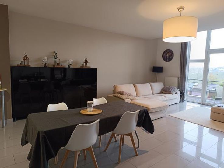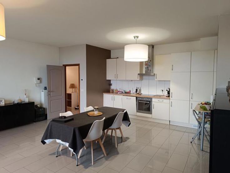 Splendide appartement à Stembert, au 1er étage, dans un clos aéré et protégé. Il est spacieux, confortable et lumineux, idéalement situé au calme, à deux pas de toutes commodités et services (bus, école). RDC: Hall d'entrée , accès ascenseur et escaliers. 1er étage: hall d'entrée privatif avec wc, living spacieux et lumineux ouvert sur la cuisine équipée (meubles, vitrocéramique, four, hotte, évier, frigo et lave-vaisselle), 2 chambres confortables de 15m² environ, salle de bain équipée et débarras-buanderie. Terrasse et cave privative. Compteurs eau, gaz et électricité individuels. Charges de 50€/mois pour entretien ascenseur et communs. PEB B.