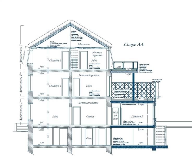 Projet de 3 appartements 2 CHAMBRES de 63,50 - 74 et 74 m², TOUS AVEC UNE TERRASSE dont le permis est périmé depuis 2020.