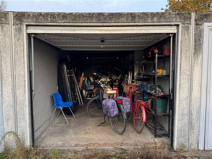Garagebox van 16 m² gelegen over nummer 163E. U koopt enkel de constructie. De grond wordt gehuurd van AG Vespa en de huur bedraagt € 492,61 per jaar. Hierdoor zijn er geen notariskosten te betalen bij de overdracht.