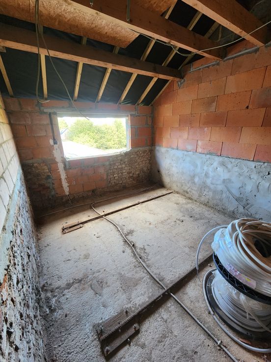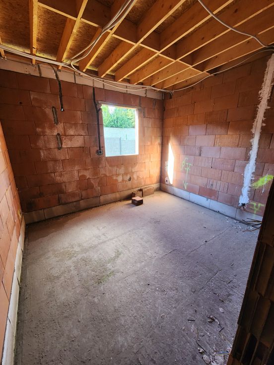 Très beau projet de rénovation d'un bâtiment en gros oeuvre couvert prévu pour 2 logements de 2 chambres chacun, mais pouvant très bien être rénové en maison unifamiliale de 4 à 5 chambres.