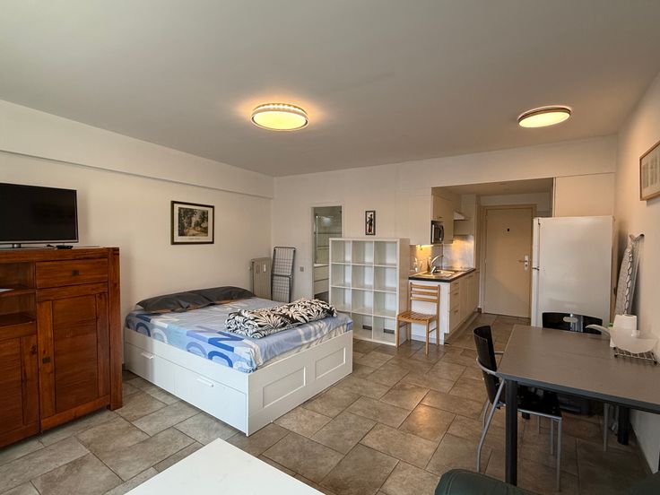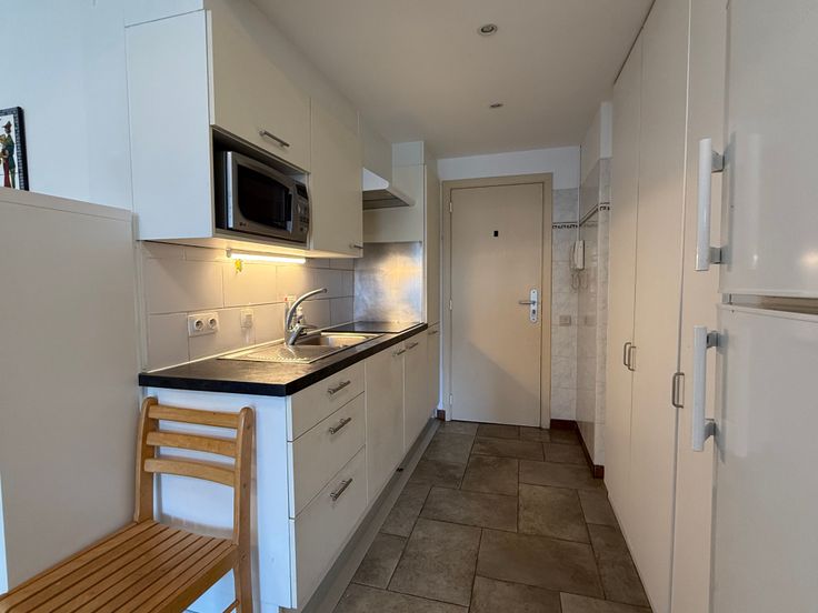 Indeling: inkom met open keuken voorzien van lavabo, kookplaat, dampkap en microgolfoven, ingebouwde vestiaire kast, open leef- en slaapruimte, badkamer met ligbad, wastafel, toilet en aansluiting voor wasmachine.