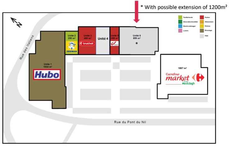Mogelijkheid om een commerciële ruimte te creëren tot 1200m². Gemeenschappelijke kosten van 2,5€/m².