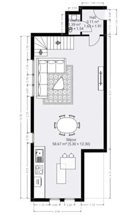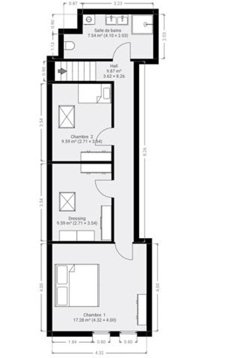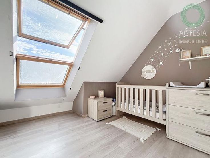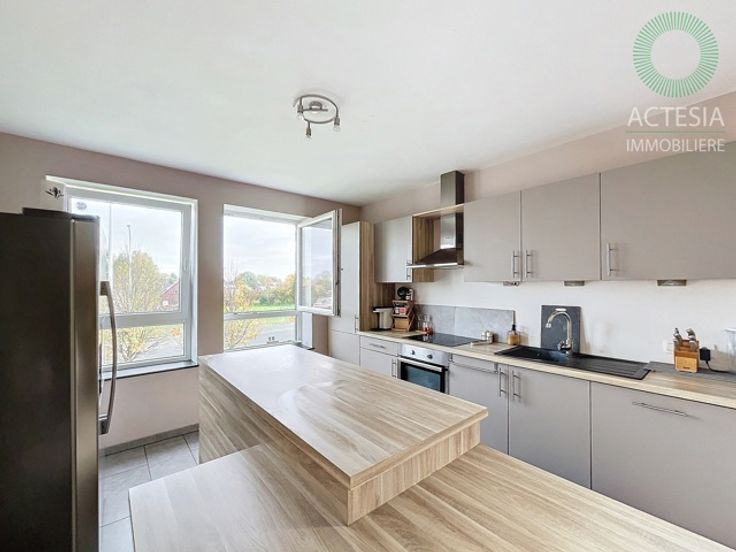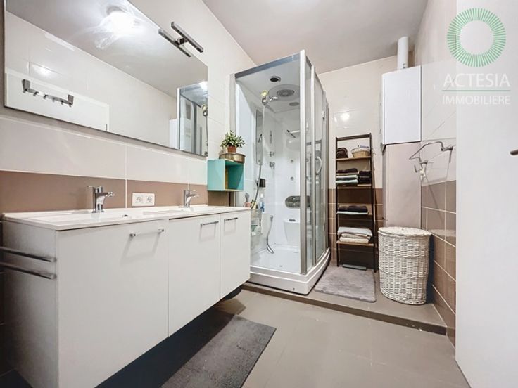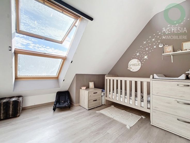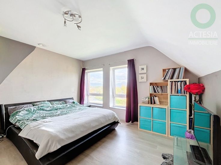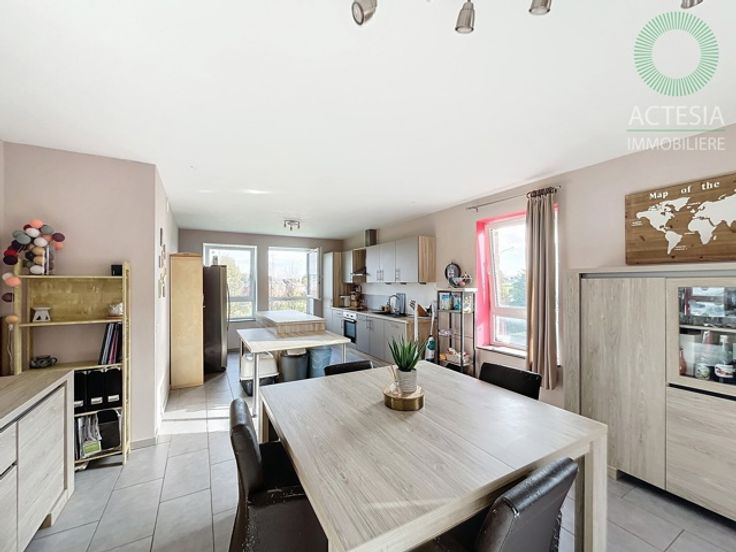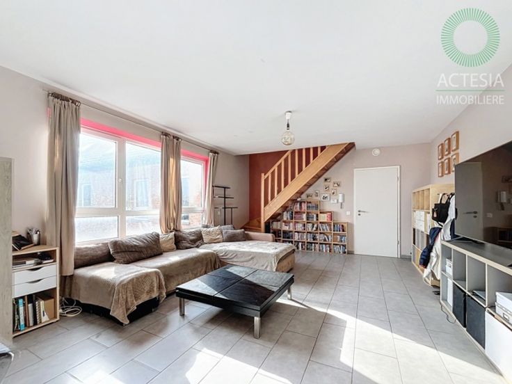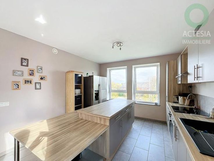 Avec une superficie habitable de ± 116 m², il se compose comme suit : rez-de-chaussée : un hall d’entrée, un très grand séjour de 56 m² avec un espace salon et salle à manger, une cuisine super équipée (four, taques vitro, hotte, évier, lave-vaisselle) avec ilot central, des toilettes. 1er étage: un hall de nuit, 2 chambres dont une chambre parentale de 17 m2, un dressing et une belle salle de bains (meuble avec double lavabo, douche, WC, emplacements machines à laver et sèche-linge). Au sous-sol: une cave et un emplacement de parking intérieur. Extérieur: un emplacement de parking.