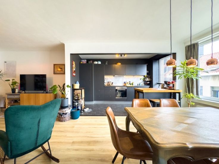 Bent u op zoek naar een rustig en ruim appartement met veel lichtinval en een centrale ligging? Zoek niet verder! Dit prachtig gerenoveerde appartement biedt u al het comfort dat u nodig heeft. Locatie en Mobiscore Dit appartement is zeer goed gelegen! Het bevindt zich op wandelafstand van Park Spoor Noord, diverse winkels, openbaar vervoer, belangrijke invalswegen en een Velo-station. Indeling van het Appartement Ruime inkomhal: Voorzien van ingemaakte kasten, ideaal voor extra opbergruimte. Ruime woonkamer: Gezellige leefruimte met veel natuurlijk licht. Open, volledig ingerichte keuken: Moderne keuken die van alle gemakken is voorzien. Badkamer: Uitgerust met een inloopdouche en een wastafel met meubel. Apart toilet: Praktisch en comfortabel gescheiden van de badkamer. Twee ruime slaapkamers: Bieden voldoende ruimte voor een groot bed en extra meubilair. Zonnig balkon Extra Kenmerken Volledig gerenoveerd: Inclusief dak, lift en elektrische installaties, alles conform de huidige normen. Veel lichtinval: Grote ramen zorgen voor een aangename en heldere leefruimte. Kelder met bergruimte: Handig voor extra opslag. Parkeermogelijkheden: Mogelijkheid tot het huren van parkeerplaatsen direct tegenover het gebouw en in de omliggende straten. Dubbel glas: Voor optimale isolatie en geluidsdemping. Lift aanwezig Dit appartement is instapklaar en ideaal voor wie op zoek is naar een comfortabele en centraal gelegen appartement.  Neem contact met ons op voor een bezichtiging via 03