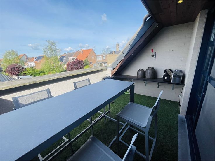 Brugge op de Blankenbergse Steenweg Prachtige LICHTRIJKE ENERGIEZUINIGE WONING met 3 SLPKS + BUREAU + ZONNETERRAS met vergezichten. omvat: inkomhal, gastentoilet, wasplaats- berging, slaapkamer , grote gemeenschappelijke daktuin, open bureau , lichtrijke living met grote glaspartij, plafondhoogte van 4 meter met vide naar open ingerichte zit-enkookkeuken met eetruimte uitgevend op privé zonneterras. Boven nachthal, 2 ruime slaapkamers badkamer met ligbad, douche ,lavabo en toilet. Grote geïsoleerde zolderverdieping waar nog kamers mogelijk. Uitstekende aluminium ramen met dubbel glas, horren en sunscreens, CV, Perfect onderhouden en tot in de puntjes verzorgde gezinswoning. Gemeenschappelijk fietsenberging, mogelijkheid tot aankoop garagebox , achterliggend op de gemeenschappelijke koer, afgsloten van de straat door grote electrische poort. Renovatieplicht: nee