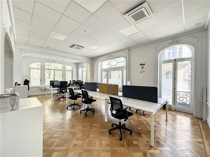 Bezoek dit pand met Christopher: 0478/07.34.26 // Gelegen in de meest prestigieuze wijk van Brussel, prachtig privé herenhuis voor kantoorgebruik van ±1000 m² gebouwd in 1912 en gerenoveerd in 2019. Het gebouw is ideaal gelegen op de hoek van de Vleurgatlaan en de Américainestraat, met een straatgevel van 28 m. De kantoren hebben een prachtige entree met een aantrekkelijk open trappenhuis, verschillende open ruimtes, vergaderzalen, een grote cafetaria/lounge met een semi-ingerichte keuken (gootsteen, vaatwasser, 3 magnetrons) en toiletten op elke verdieping. Het gebouw heeft zijn mooie historische kenmerken behouden. Boiler op gas, houten ramen met enkele en dubbele beglazing, video-intercomsysteem, alarm, airconditioning. Pluspunten: prestigieuze buurt in de onmiddellijke nabijheid van de Louizalaan en het Tenboschpark, talrijke winkels, restaurants, sportscholen en vervoersverbindingen (bus, tram 'Vleurgat'), prestigieuze entree, antieke details, airconditioning. Afmetingen zijn indicatief. Beschikbaar per direct!