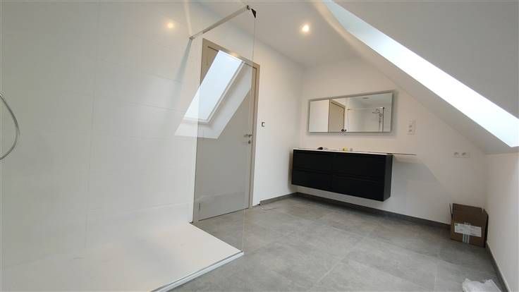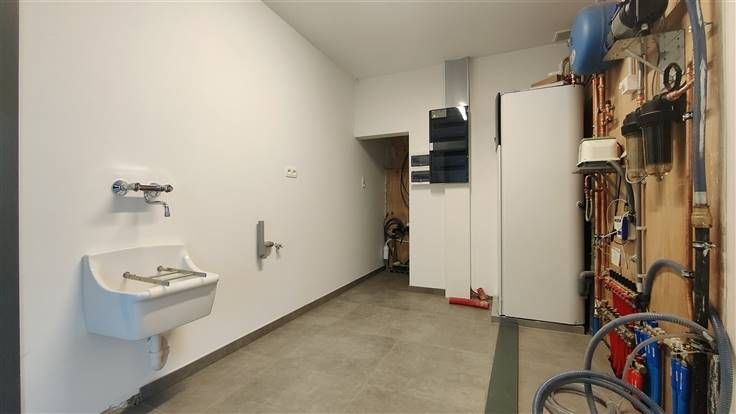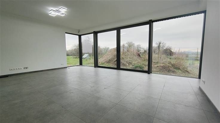 Au rez-de chaussée, un grand hall d'entrée lumineux laisse découvrir un living généreux et une cuisine entièrement équipée ouverte, le tout offrant une vue panoramique sur l'extérieur, un WC séparé ainsi qu'un bel espace buanderie. .