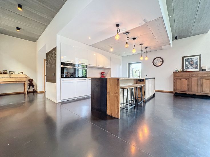 FAIRE OFFRE À PARTIR DE 795.000€ Authentique grange rénovée et aménagée en 2010 de ±345m² habitables et ±560m² bâtis sur une parcelle de 1750m². L'entrée se fait par un porche de ±80m². Le rez-de-chaussée offre une vaste pièce de vie lumineuse de 120m² avec cuisine full équipée, vestiaire sur mesure, toilettes invités, bel espace buanderie (±13m²), espace technique (±22m²) et réserve (±12m²). Le premier étage profite d'un large hall de nuit avec espace bureau desservant trois belles chambres de ±20m², une salle de bains, une toilette séparée et un espace polyvalent de ±30m². Au second étage, la chambre parentale de ±25m² côtoie deux grands espaces polyvalents sous charpente permettant d’aménager des pièces de vie ou une chambre avec SDB. Une porte vitrée permet d'ailleurs un accès séparé vers un potentiel studio (à aménager). Le porche d'entrée abrite un grand espace servant de parking, d'espace de stockage et de terrasse couverte. À l’extérieur, des écuries de ±50m² avec quatre boxes et un jardin parfaitement orienté avec vue imprenable complètent le tout. PEB A, citerne d'eau de pluie, station d'épuration, pompe à chaleur, poêle à bois, et bien d'autres atouts à découvrir sans tarder ! En sus de la grange, une dépendance cadastrée séparément profite de 3 chambres et de 2 salles de bains. Elle est actuellement louée et également en vente à partir de 190.000€.