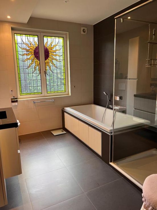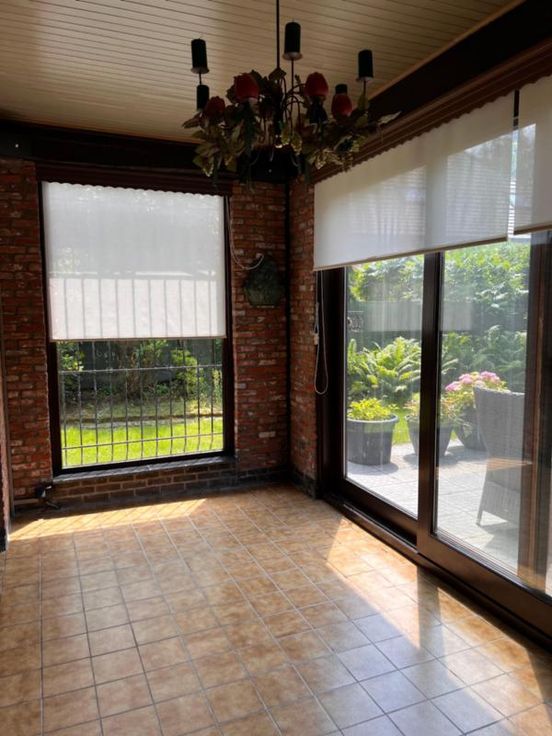 Rustig gelegen charmant huis, gebouwd in 1982, voorzien van 2 busnummers. Het huis is uitermate geschikt als duo-woning maar ook voor vrije beroepen. De troeven zijn vooral het aantal kamers, vlotte parkeergelegenheid en de unieke mix van bouwstijlen. Gelegen vlakbij invalswegen, school en winkels in een rustige straat met veel groen. Het gelijkvloers is landelijk ingericht met natuurlijke materialen. De badkamer met toilet op het gelijkvloers werd tien jaar geleden volledig vernieuwd. Bij aankomst tref je de voordeur aan met aparte inkom voor beneden en boven. Ruime woonplaats met open haard, 2 slaapkamers, apart toilet, de vernieuwde badkamer met toilet, een klassiek ingerichte keuken en een veranda met terras en 2 inpandige garages vervo eling van de benedenverdieping. De eerste verdieping werd in 2011 grondig verbouwd in loft stijl met grote glaspartijen, hoge plafonds een grondig geïsoleerd dak. Hier kan je de woonplaats in terugvinden, een bureau in de dakkapel, een modern ingerichte keuken, badkamer met toilet, een apart toilet en tot wel 5 slaapkamers, wasplaats, een aparte dressing en ingemaakte kasten in de gang. De tuin is mooi ingedeeld met een tuinhuis en barbecue en het royaal aanwezige groen zorgt voor voldoende privacy rondom het hele huis. Voorzien van zonnepanelen met terugdraaiende tellers voor zowel het gelijkvloers als het eerste verdiep. Alarminstallatie op beide verdiepen en een bewakingscamerasysteem rondom het huis. G score: A P score: A