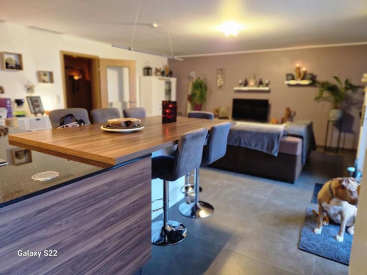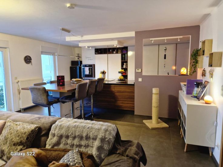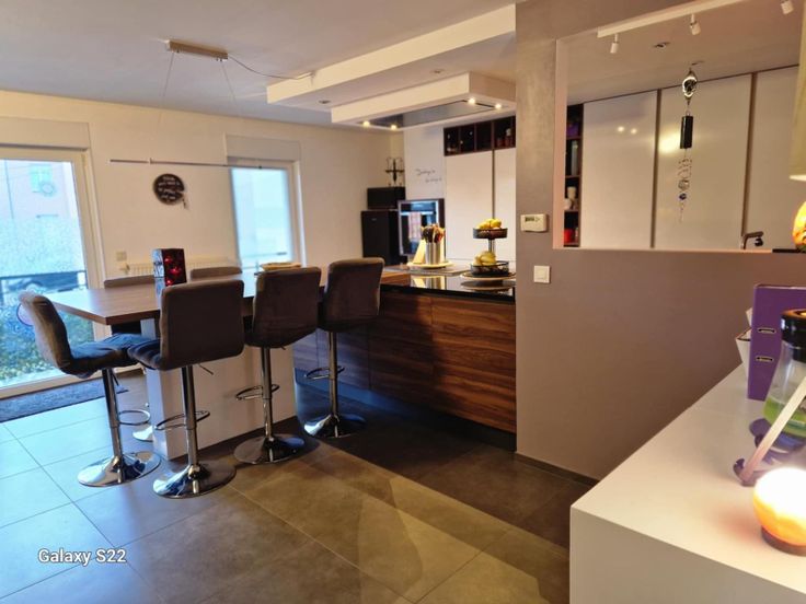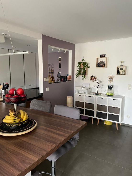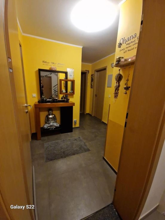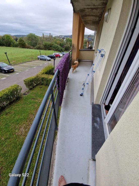 mooi appartement (109 m2) gelegen te Aubange, niet ver van de Luxemburgse grens; 2 slaapkamers; living met een open keuken; badkamer; 2 WC; 2 balkons;1 binnen en een buitenparkeerplaats;1 kelderruimte; elektriciteit in orde; vrij uitzicht op de natuur