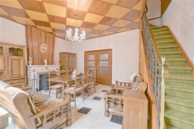 Sorry er is geen nederlandse vertaling beschikbaar. Bon rapport qualité-prix ! Sympathique maison de type 3 façades avec parking, garage, jardin et différentes dépendances qui peuvent être par exemple utilisées par une coiffeuse, une esthéticienne… désirant concilier vie privée et vie professionnelle. Maison idéalement conçue pour une famille et se composant de la manière suivante : agréable séjour, dans son prolongement cuisine semi-équipée, véranda avec sortie vers le jardin et WC + buanderie. A l’étage : hall de nuit, 2 belles chambres indépendantes + une salle-de-bains tout à fait fonctionnelle même si à remettre au gout du jour, ainsi qu’un grand grenier aménageable . Au sous-sol, une cave toujours appréciée par la clientèle, aménagéeen chaufferie, possibilité d’y faire du rangement. Le tout sur un terrain de +/- 6 ares avec parking, garage, atelier, dépendances, cour et un beau et grand jardin à l’abri des regards indiscrets. Infos utiles : maison 3 façades, bonne toiture aussi bien pour le bâtiment principal que pour les annexes, châssis mixtes simple ou double-vitrage en bois, volets, chauffage central au gaz de ville, cheminées fonctionnelles, différentes entrées, possibilité d’extension, électricité à revoir, raccordement aux égouts. De plus, situation intéressante, en effet, au calme et à la fois a proximité de toutes les commodités : gare, bus, grande surfaces, écoles… Qu’attendez-vous ? Bien libre de suite, atout supplémentaire à ne pas négliger. Informations in