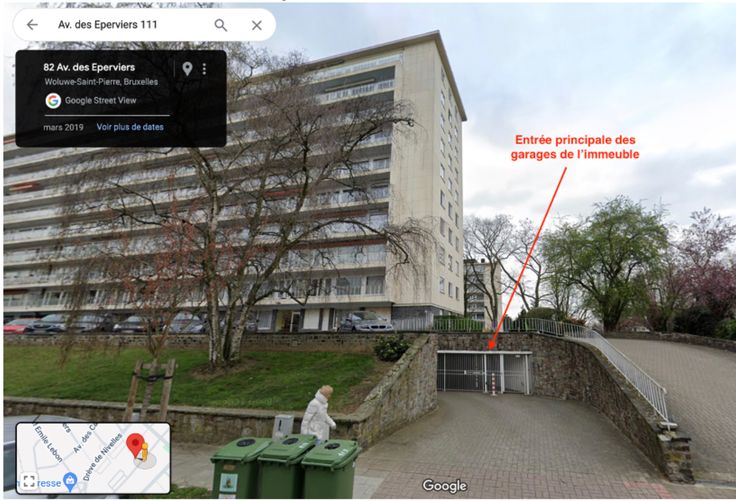 Privégarage nr. 14 (parkeerplaats) gelegen in de kelder van het ETRIMO-gebouw, paviljoen Irlande, aan de Épervierslaan 113, in de populaire wijk Chant d'Oiseau, 1150 Sint-Pieters-Woluwe.