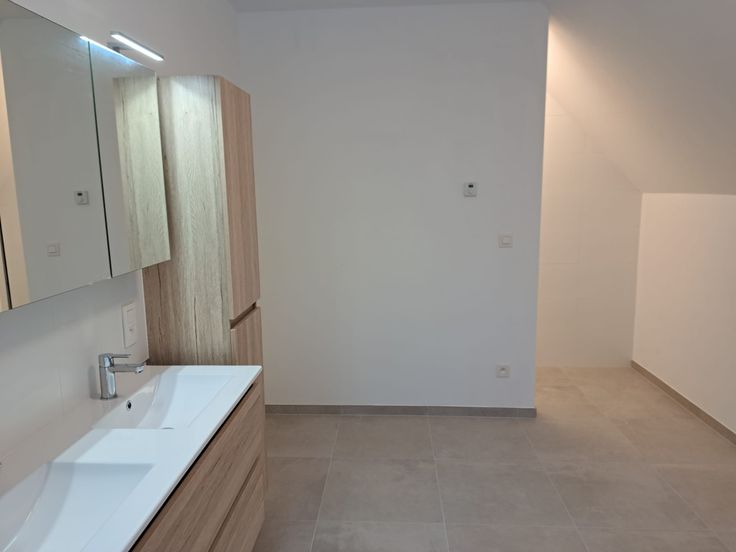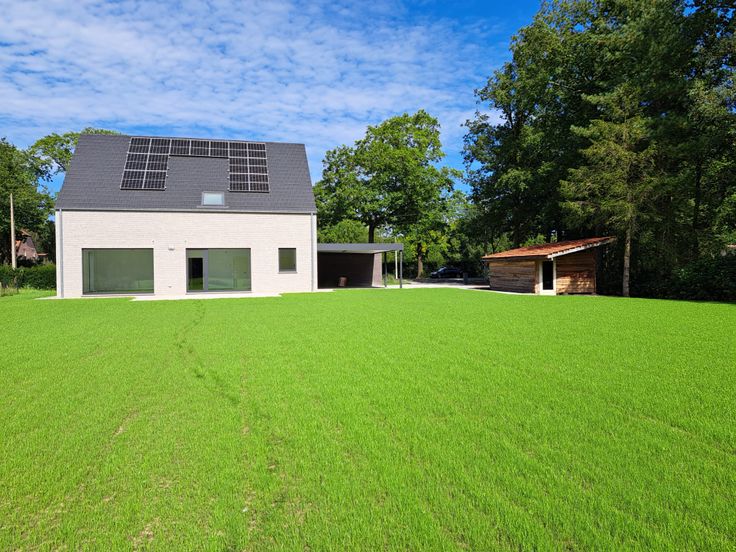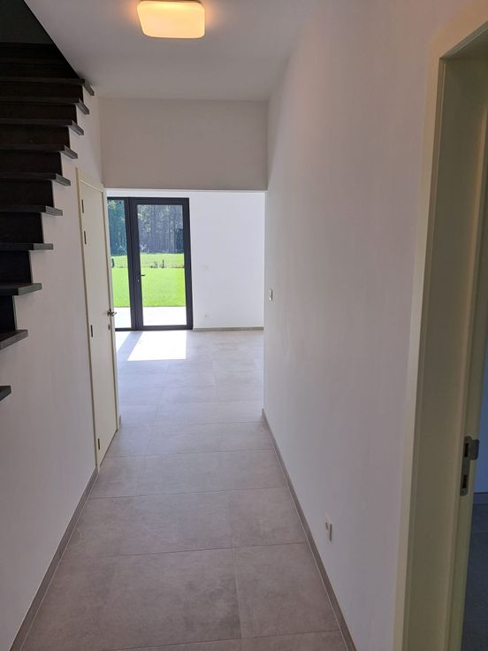 Een mooie en volledig geschilderd nieuwbouwwoning bestaande op het gelijkvloers uit een ruime woonkamer met open, ingerichte keuken, bureel of slaapkamers, bergplaats, ruime wasplaats, afzonderlijk toilet. Op de eerste verdieping bevinden zich nog 5 slaapkamers en een badkamer. Op de tweede verdieping bevindt zich nog een ruime polyvalente kamer met ook het ventilatiesysteem. Achter de woning is er een terras en een ruime tuin. In de tuin bevindt er zich nog een tuinberging. Er is een dubbele carport aan de woning. De woning is voorzien van een warmte pomp en zonnepanelen.