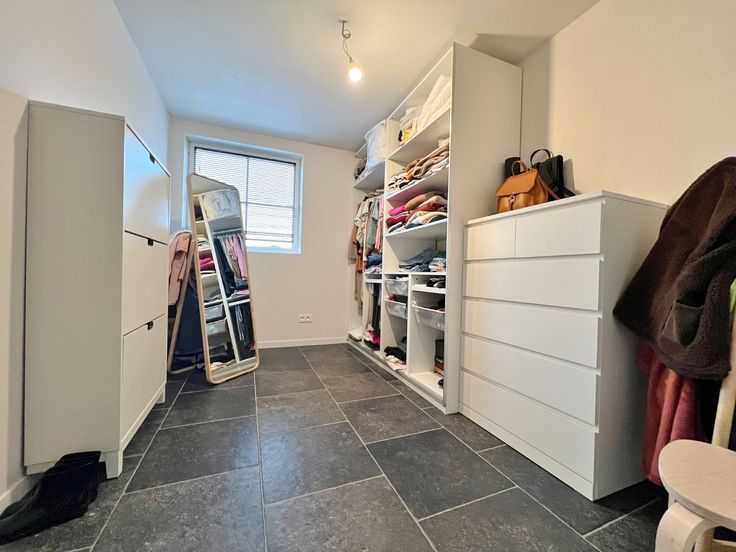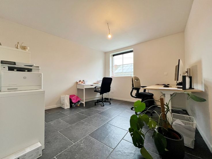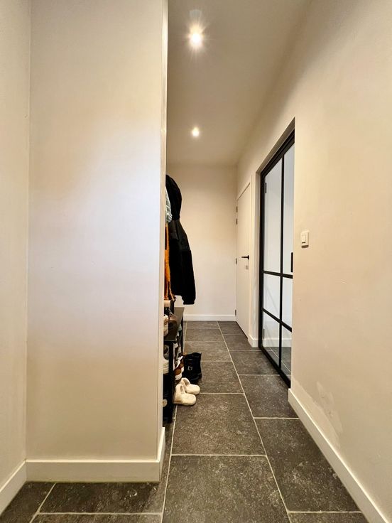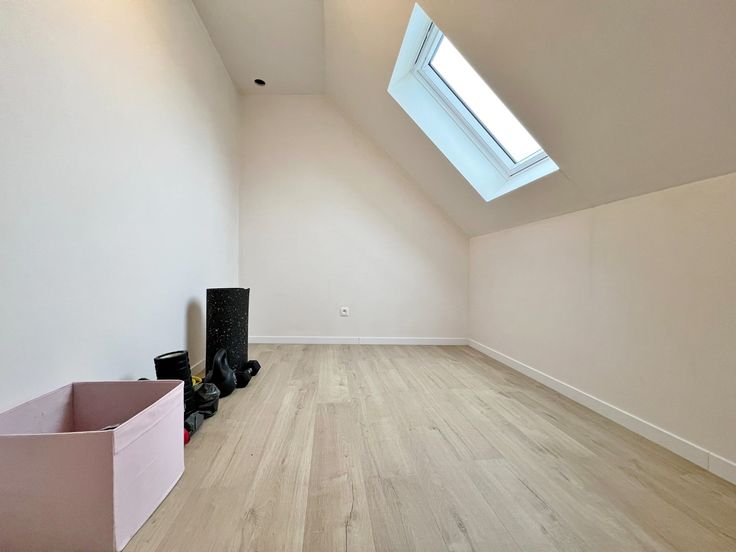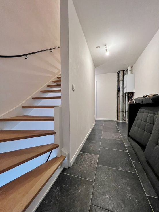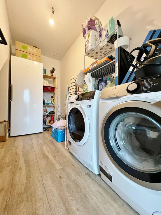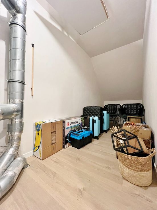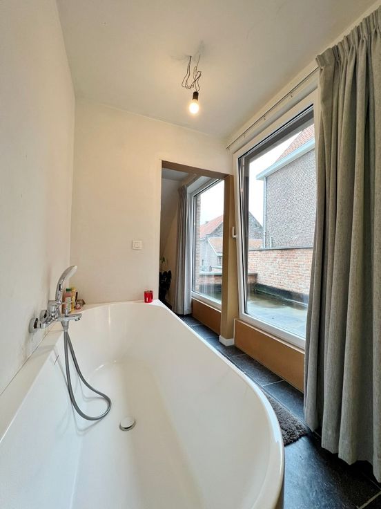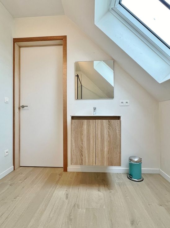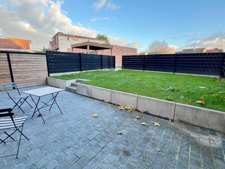 Buiten kan je genieten van de zuid gerichte afgesloten tuin met terras en uitweg.