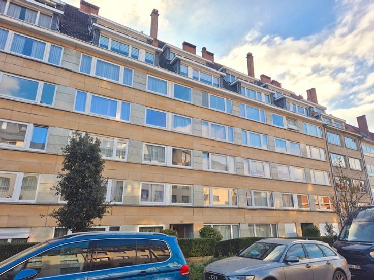WOLUWE-SAINT-LAMBERT -- Excellente situation dans une rue très calme entre les stations de métro GRIBAUMONT et TOMBERG, à proximité des commerces et de toutes les commodités. Bel appartement 2 chambres de +/- 96m2 avec terrasse situé au 4ème étage d'un bel immeuble. Il est composé comme suit: Hall d'entrée avec placard/vestiaire - Spacieux et lumineux séjour de +/- 30 m2 avec parquet au sol - Grande cuisine entièrement équipée (taques, hotte, four, frigo, surgélateur, lave-vaisselle et lave-linge) - 2 chambres arrières de +/- 15 et 12 m2 dont une donnant accès à la terrasse orientée SUD - Belle salle de bain - 1 cave privative et garage au sous-sol. Libre immédiatement. PEB= C+. Loyer: 1200€ + provision de charges 150 € (chauffage, eau froide, communs). Garage box obligatoire: 100€. A visiter rapidement! LIEN VISITE VIRTUELLE: https://my.matterport.com/show/?m=hQ4k15nLRAA